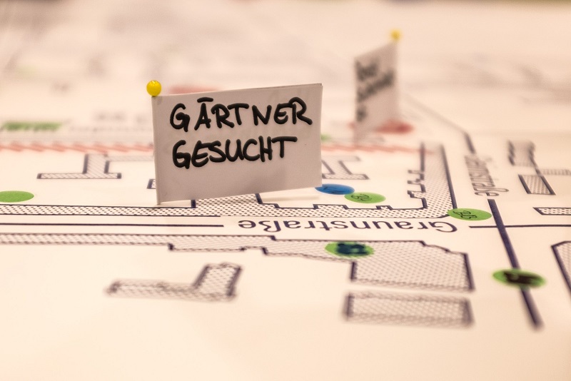 Für einen besseren Überblick hat gruppe F die vielfältigen nachbarschaftlich begrünten Orte im Quartier kartiert und parallel mit Pflanzschildchen in allen Baumscheiben, Beeten und Kübeln über das neue Projekt informiert. Gemeinsam mit BewohnerInnen, KiezKlima, der degewo und dem Bezirk wurden Potenzialflächen für neue Gartenprojekte identifiziert.